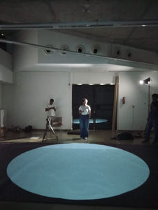 Upon scanning the provided QR code, participants were directed to engage with a series of questions displayed on their mobile screens. Simultaneously, a dynamic visual element: footprint, unfolded beneath their feet as they started answering the questions. The size of the footprint changed real time with respect to the answers that participants gave. They also were encouraged to watch the change while keeping the questions in mind. And when they walked around while answering, they discovered that the footprint moved with them.